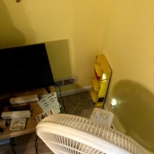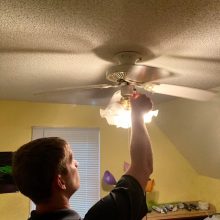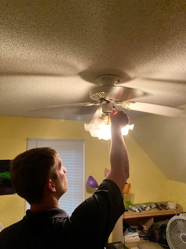 – Turn on all lights (overheads and lamps) but make sure ceiling fans are in the off position.