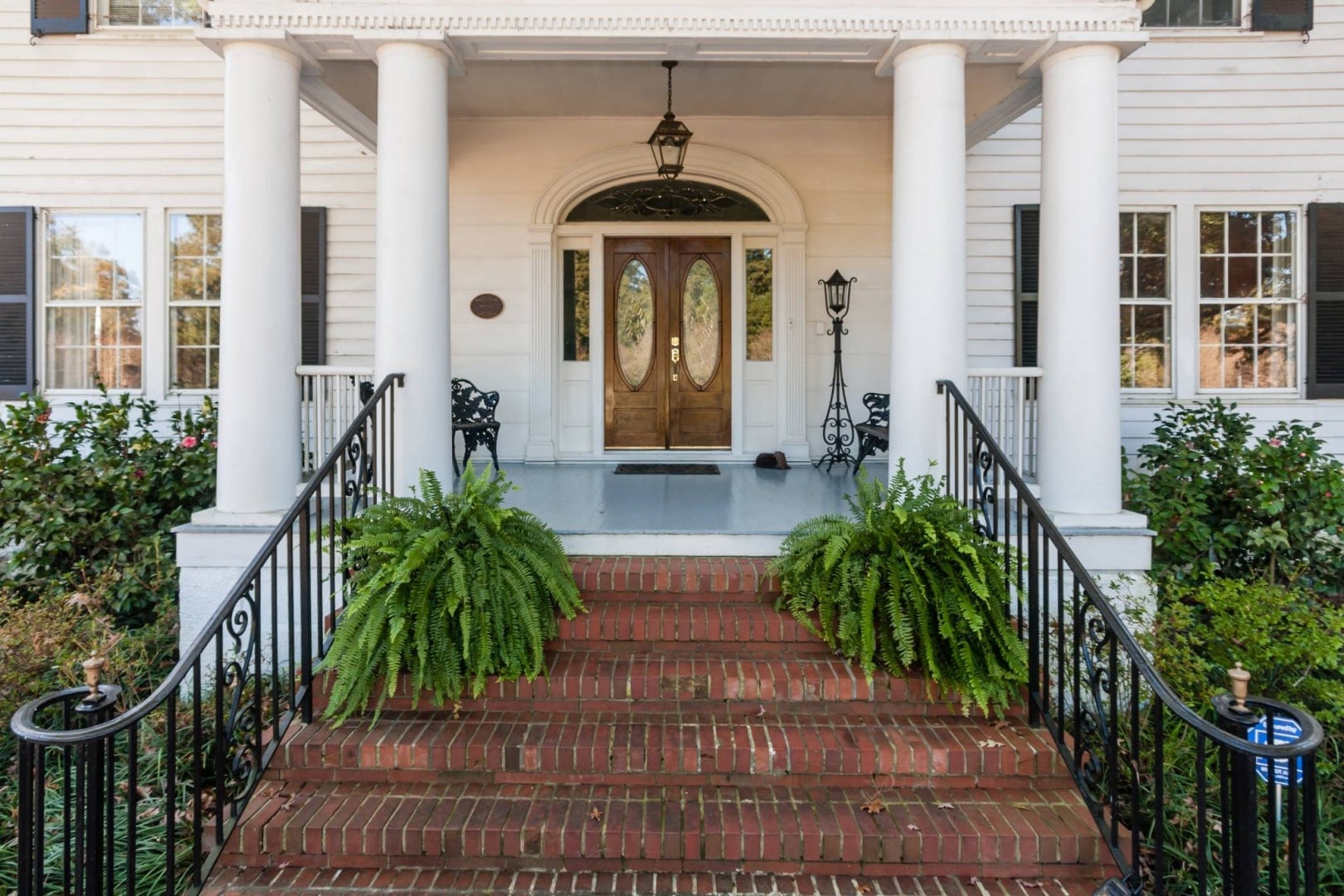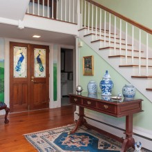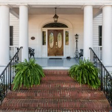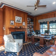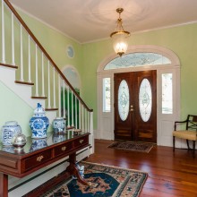 The feel of this home is evident as soon as you pull through the gated circular drive – the home rests under the protection and shade of huge white oak trees at the edge of an expansive lawn. Though the grandeur of the property is palpable, the home itself is stately and simple. There is no need for excessive landscaping or extravagant detailing – the home is welcoming and impressive on the merits of its own patina. It was added to the National Register of Historic Places in 2006, and proclaimed a Raleigh Historic Landmark in 2010.