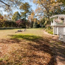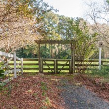 The grounds on this estate are equally impressive. From the brick monuments, cast iron gates and lanterns at the driveway, the cast iron fence that runs along the west side of the estate, to the mature landscaping that surrounds the lawns, the lush pedigree of this estate is evident. Aside from the grand entry and expansive front lawn, there is a very private terraced rear lawn. There is a raised circular deck with a brick firepit to enjoy the cool fall evenings, looking out over the mature Crapemyrtles along the split rail fence. There is a gorgeous brick path, lined with roses that leads to the large fenced garden. There are currently four raised garden plots, perfect for vegetables or an imaginative English Garden. Near the garden, there is a large garage building, certainly adequate for a potting shed or workshop to service the property. There is also a fenced pasture that runs along the eastern side of the property that is almost two acres – this is a horse property after all.