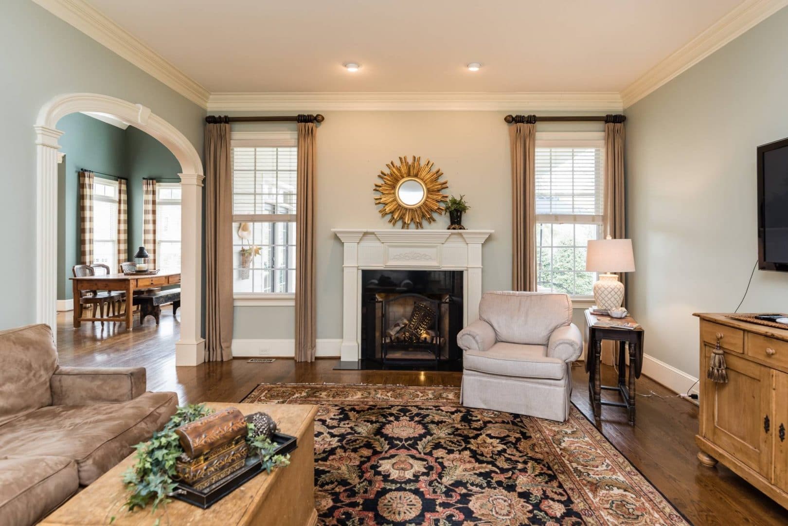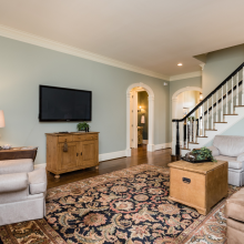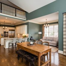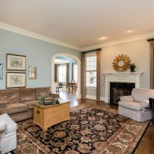 Every detail of this Ange Signature Home has been thoughtfully considered. Upon approaching the broad south-facing porch, your eye is drawn from the Charleston shutters to the coach lights and up to the coffered porch ceiling. There is a formal dining room to the left of the grand entry foyer trimmed in layers of millwork and wainscoting. Gleaming hardwoods lead to the huge living room anchored by a large gas/wood burning fireplace. The master suite is off of the living room and spans the entire east side of the home. Walking through the owners foyer into the bedroom, you realize that this is truly an owners retreat. The bedroom is large enough for any type of furniture and the finishes in the bath are world class – seeing is appreciating. Through another arch at the rear of the living room, you will find the informal living spaces, with a wide open kitchen, breakfast nook, and keeping room. This space is bathed in light – both sock-feet comfortable and candlelight elegant.
