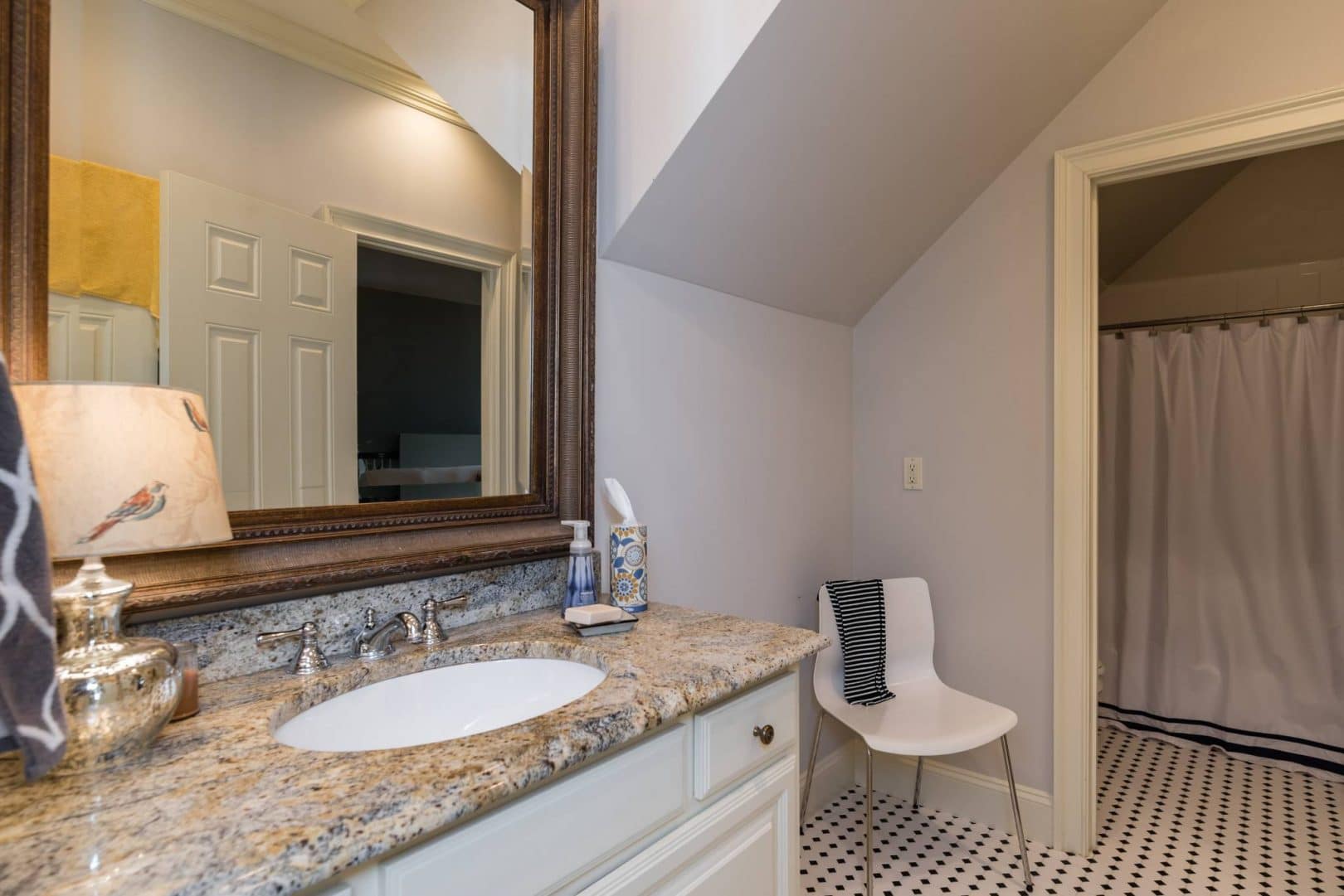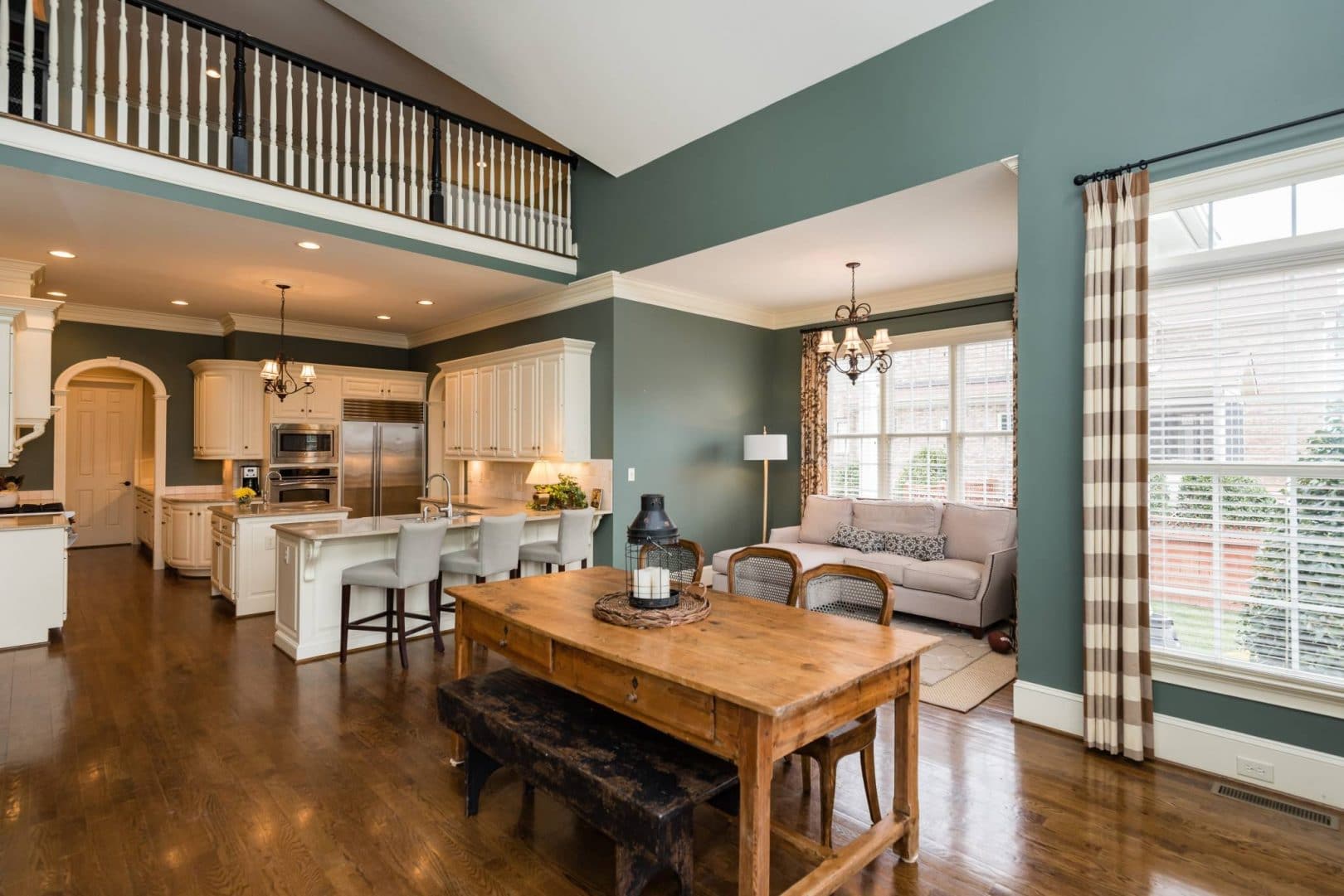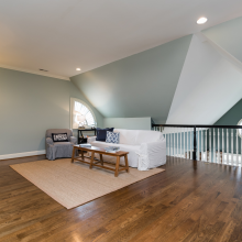The gourmet kitchen showcases the fine taste of the owners, with Sub Zero refrigerator, Wolf gas range, Bosch dishwasher, and of course creamy white casework, travertine backsplash, and acres of level 5 granite. There is a huge loft area that looks down over the keeping room that joins this awesome space with the upstairs. There are also three bedrooms and two jack-and-jill baths on this level as well as a fantastic bonus room. The bedrooms are large and have great closet space. And to round it out, there is a finished third floor, currently used as a bedroom, but could just as easily be a yoga studio or theater room.