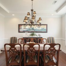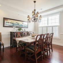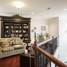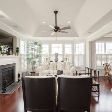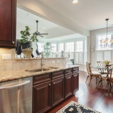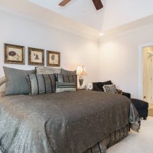 This three bedroom, two and a half bath Brunswick model offers single-level living. At 2134 square feet, and with a huge garage, this home should be big enough for your imagination. Upon entry into the two-story foyer, your guests will have the choice to scale the carpeted runner on the stairs, or use the private elevator. There is a wide open loft at the top, which showcases the gleaming hardwoods that fill the living spaces. This area is large enough for a grand piano or a cozy reading area. To the right, there is a private guest suite with ensuite bath, and there is a second bedroom as you proceed into the main living area. Both of these bedrooms have great light and nice closet space. As the living space opens, there is a large open dining room highlighted by an attractive trey ceiling and chair rail. The fine detailing continues into the huge family room area. The open floor plan of this home makes the space exquisitely comfortable – fantastic for entertaining or enjoying a quiet read by the fire. To further enhance the experience, the builder installed extra insulation at this end of the home for soundproofing. There is a long balcony to the left of the fireplace that extends the living options to the outside. On the opposite side of the family room, there is a bay window provides beautiful natural light into the home.