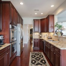 The expanded gourmet kitchen is wide open to the family room, and is replete with satiny cherry casework, upgraded appliances (including a double oven), and acres of granite prep space. The extended built-in china cabinet with seeded glass doors leads to the breakfast nook, which will surely become a favorite spot to enjoy your new home.