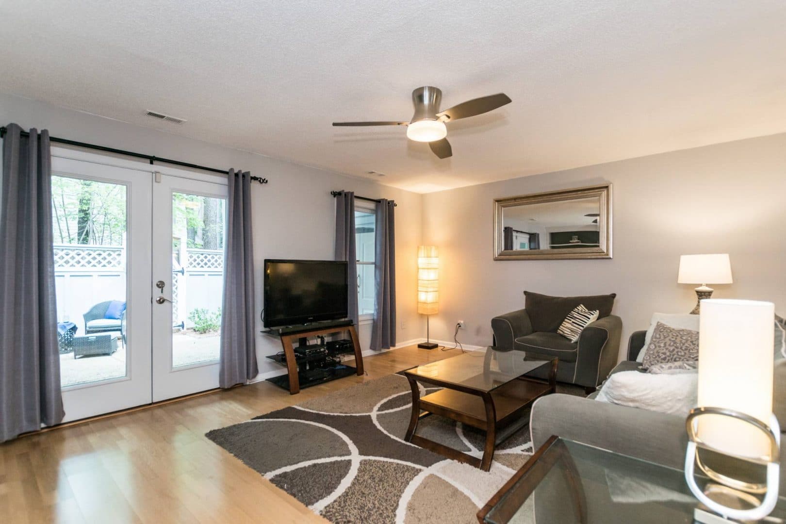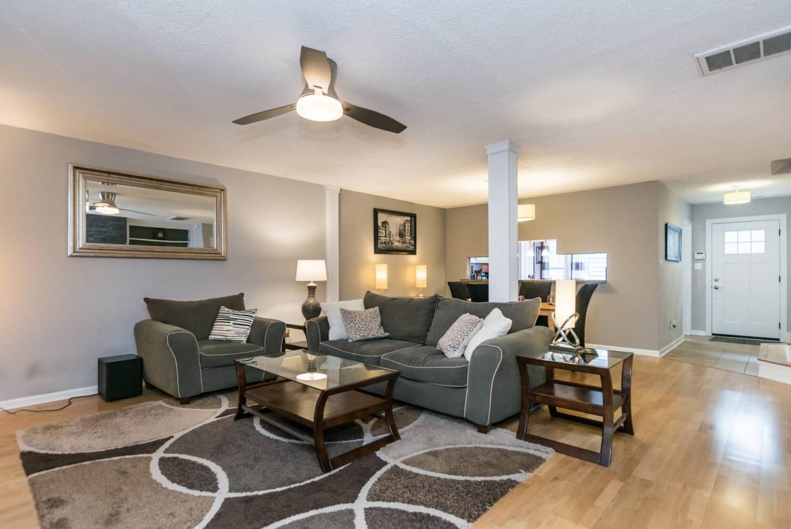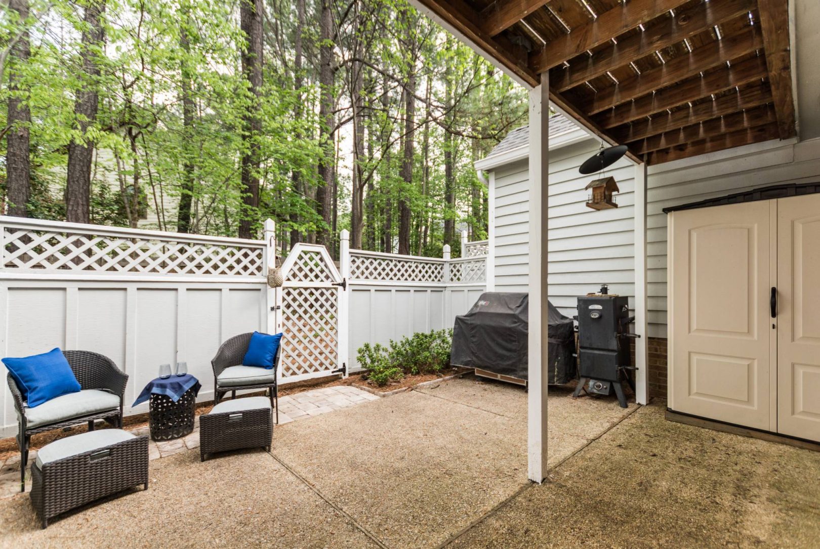 Currently being offered for sale in Lakepoint Village is this smartly updated townhome at 124 Spring Cove Drive. The lifestyle options in this townhome are more than you might expect – plenty of low-maintenance space, but with two master suites and three outdoor living spaces, this townhome lives so much larger. You will be proud to welcome your guests into the comfortable courtyard – fenced and private, ready to entertain. There is also a large garage integrated into this space, which has more than enough room for your car, motorcycle, cabinet and bench for your tools, and then some.