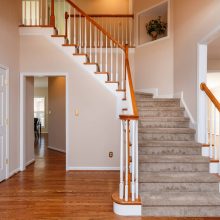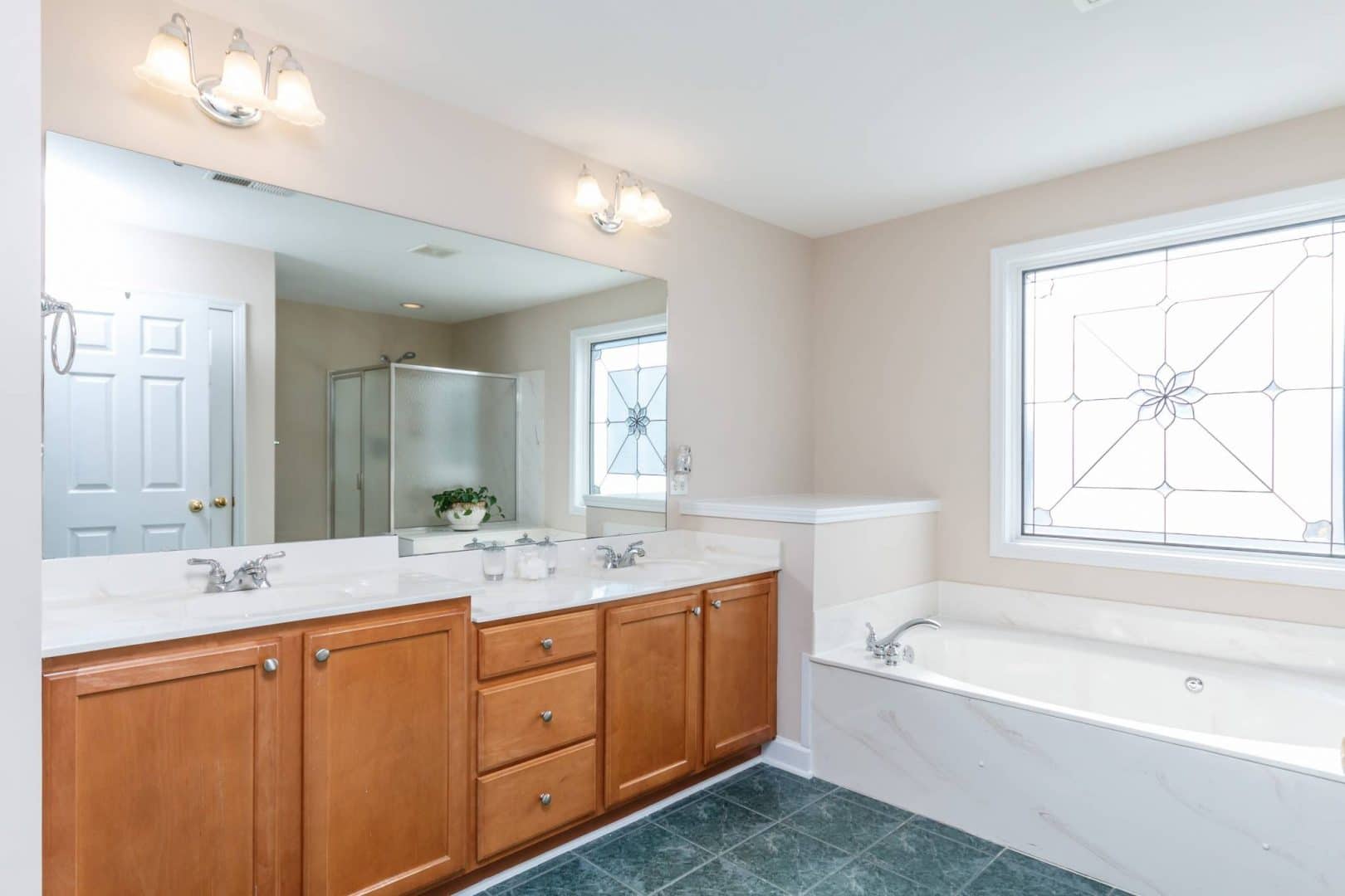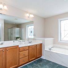 Upstairs, the efficient layout provides plenty of private living spaces. The master suite is truly an owners retreat. The bedroom is large enough for any type of furniture and the walk-in closet features organizers. The master bath has double sinks, separate double-head shower, and large garden tub. Additionally, There are also three generous bedrooms – each with fantastic closet space and great light. There is one large hall bathroom with double sinks, and there is a unique bonus space that can be used as a private yoga studio or craft room. This home offers dual points of access to the upper level with staircases in both the front and back of the home.