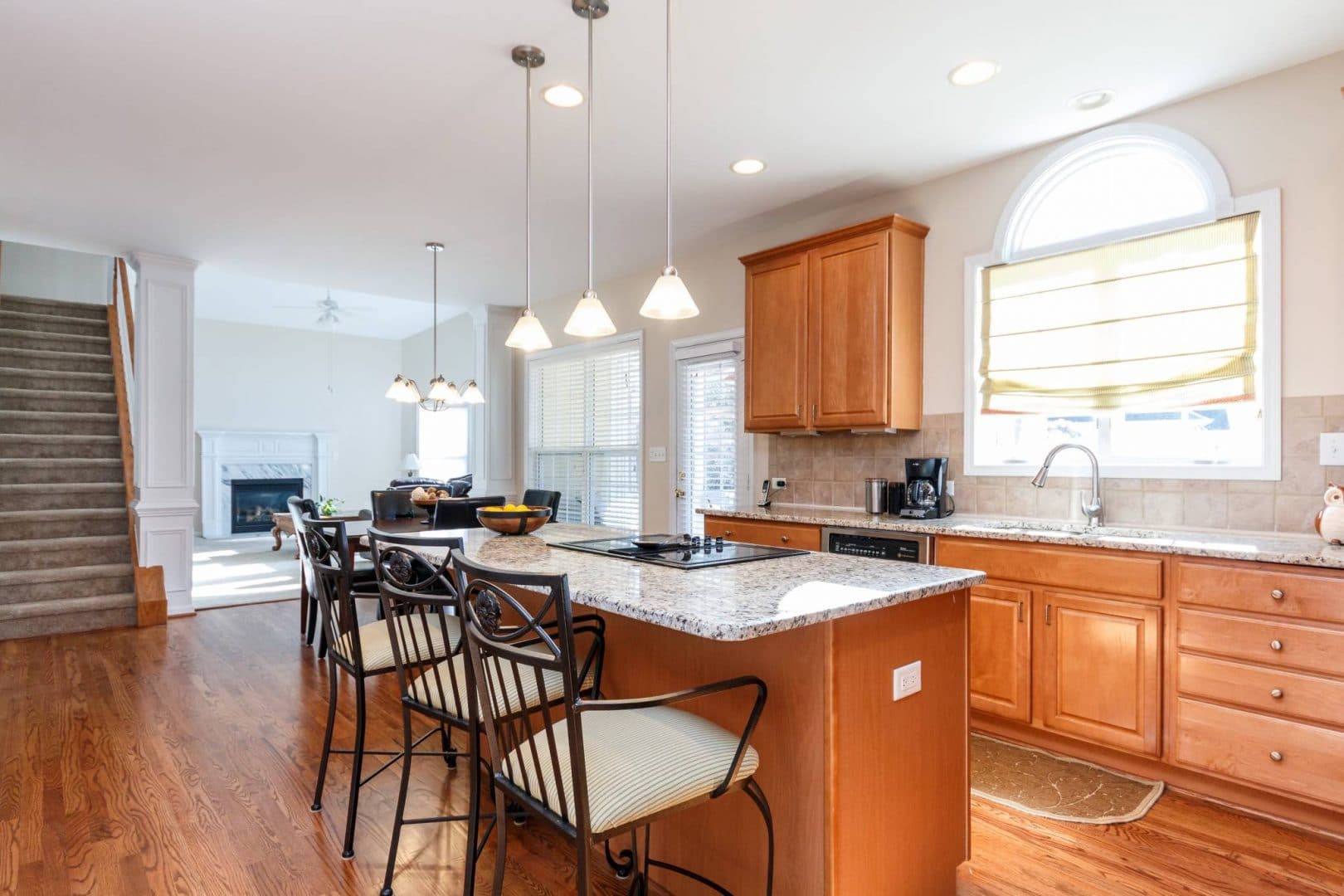 One of the nicest homes in Wood Spring is currently being offered for sale. 1708 Wescott Drive is a transitional home with fantastic corner-lot curb appeal, and a functional design perfect for active residents. The home is perfectly positioned on the end of a long loop culdesac. Not only does this home offer fantastic access to the neighborhood and community amenities, you can enjoy nature and fresh air from your peaceful screened porch-this home typifies the North Raleigh lifestyle. Every detail of this home has been thoughtfully considered. Upon approaching the inviting front porch, your guests will appreciate the fine detailing of the home and the large arching windows welcome any visitor. There is an office to the left of the entry foyer, replete with solid built-in bookshelves and recessed lighting. Glass French doors and transomed windows highlight the elegant comfort of these spaces. To the right, the formal living room is warm and welcoming opening to the spacious formal dining room. This room is perfect for entertaining and features trey ceilings as well as gorgeous crown molding.