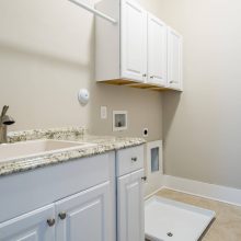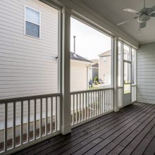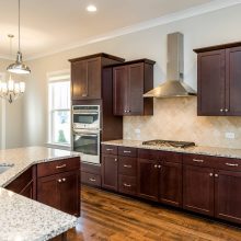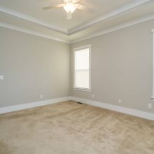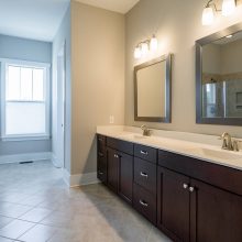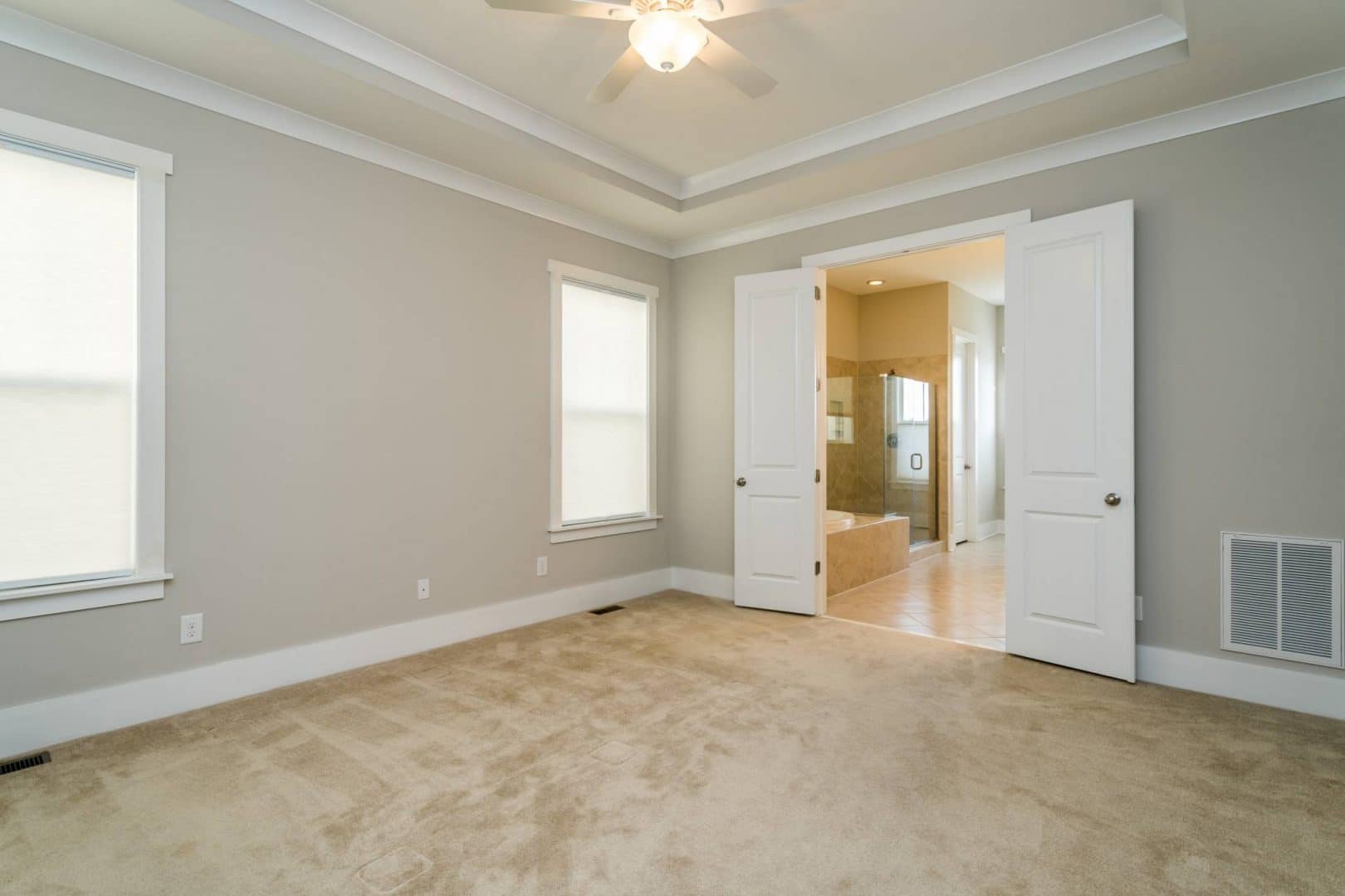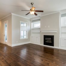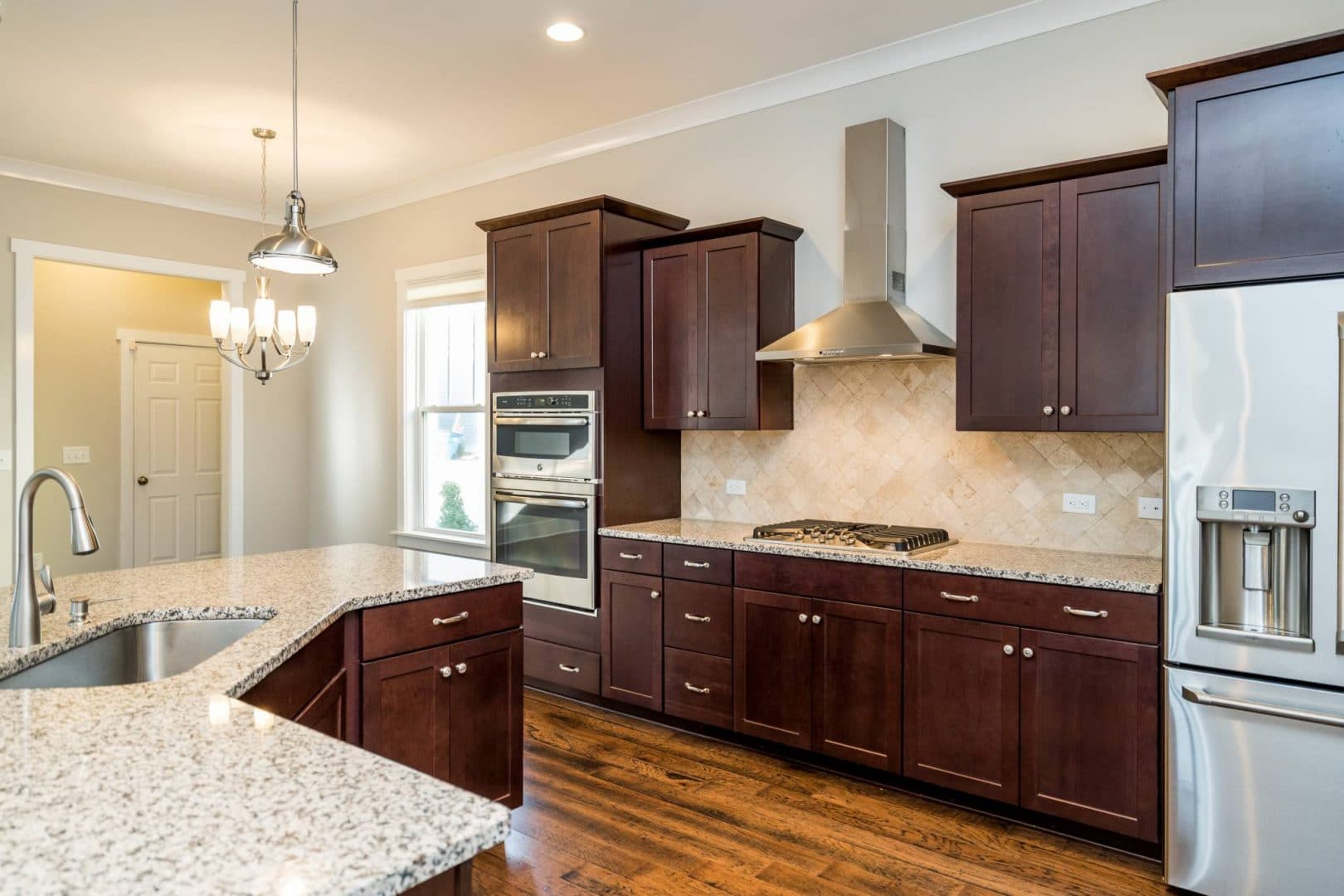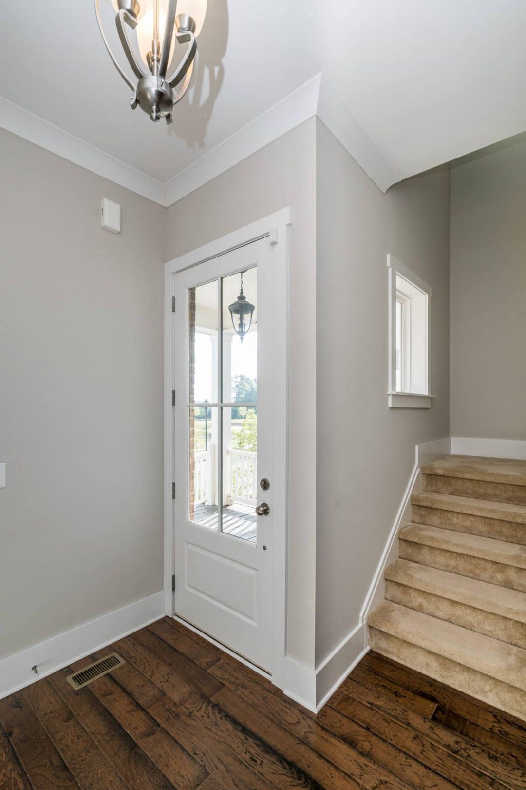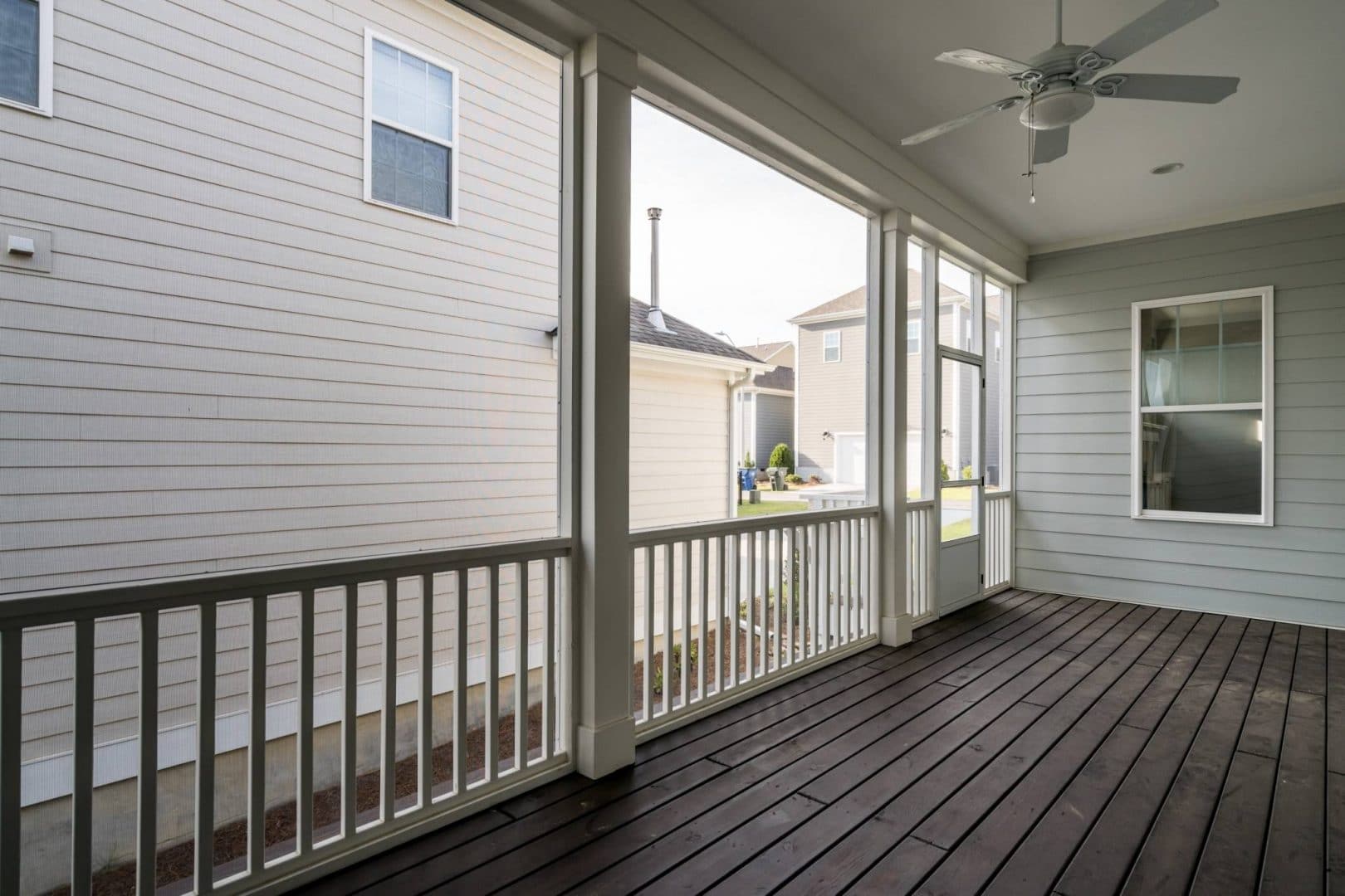 Measuring at just over 2100 square feet, the home offers a fantastic open layout and features a master suite on the main living level. This section of homes is built with alley-load garages, so that nothing detracts from the inviting curb appeal of your home. You will be proud to welcome your guests onto the large front porch and into your new home. There is a large foyer upon entering, along with a powder bathroom and coat closet. A wide hallway beckons past a large screened side porch – the windows along the hallway provide beautiful natural light. A vestibule off of this hall connects the large laundry room – replete with casework and a granite sink – and the master suite. The master suite is surprisingly large, and features an attractive trey ceiling. The master bath is decadent as well with double sinks, a large soaking tub and glassed shower – the high ceilings really make this space feel special. There is custom casework in the large walk-in closet.