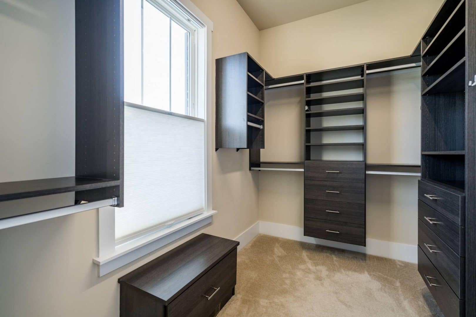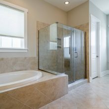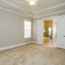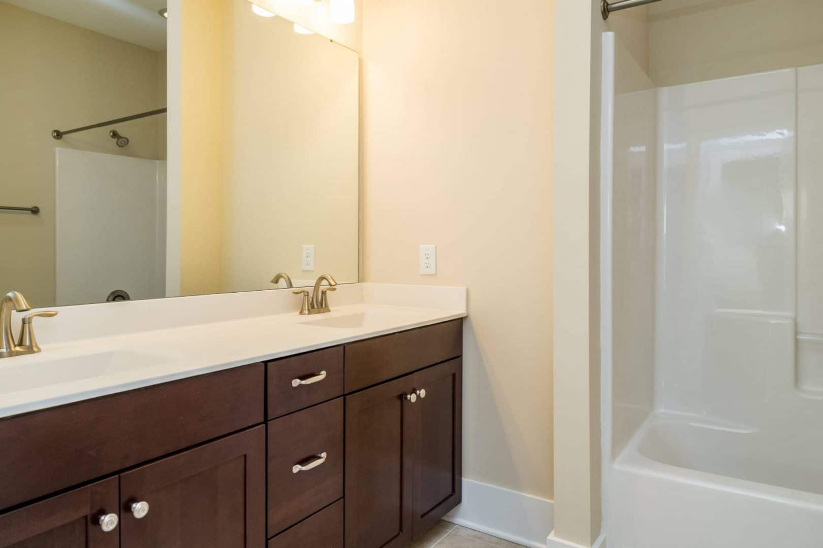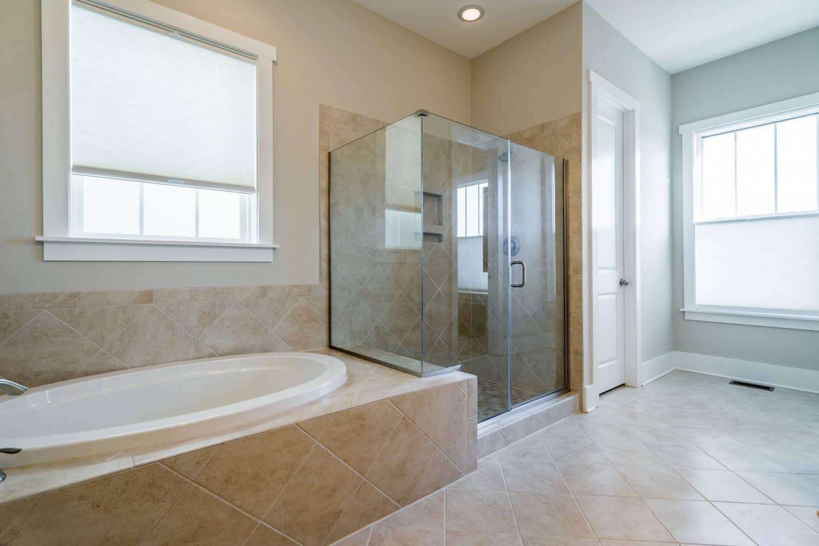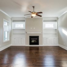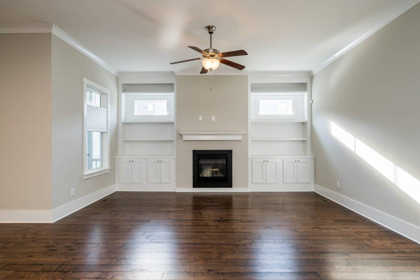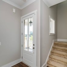 Measuring at just over 2100 square feet, the home offers a fantastic open layout and features a master suite on the main living level. This section of homes is built with alley-load garages, so that nothing detracts from the inviting curb appeal of your home. You will be proud to welcome your guests onto the large front porch and into your new home. There is a large foyer upon entering, along with a powder bathroom and coat closet. A wide hallway beckons past a large screened side porch – the windows along the hallway provide beautiful natural light. A vestibule off of this hall connects the large laundry room – replete with casework and a granite sink – and the master suite. The master suite is surprisingly large, and features an attractive trey ceiling. The master bath is decadent as well with double sinks, a large soaking tub and glassed shower – the high ceilings really make this space feel special. There is custom casework in the large walk-in closet.