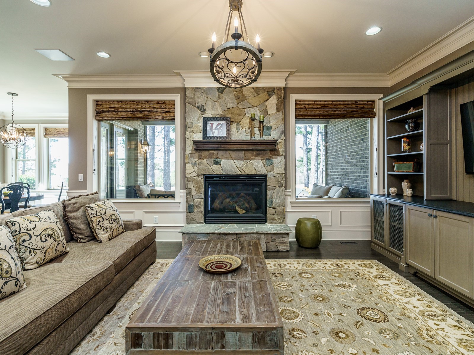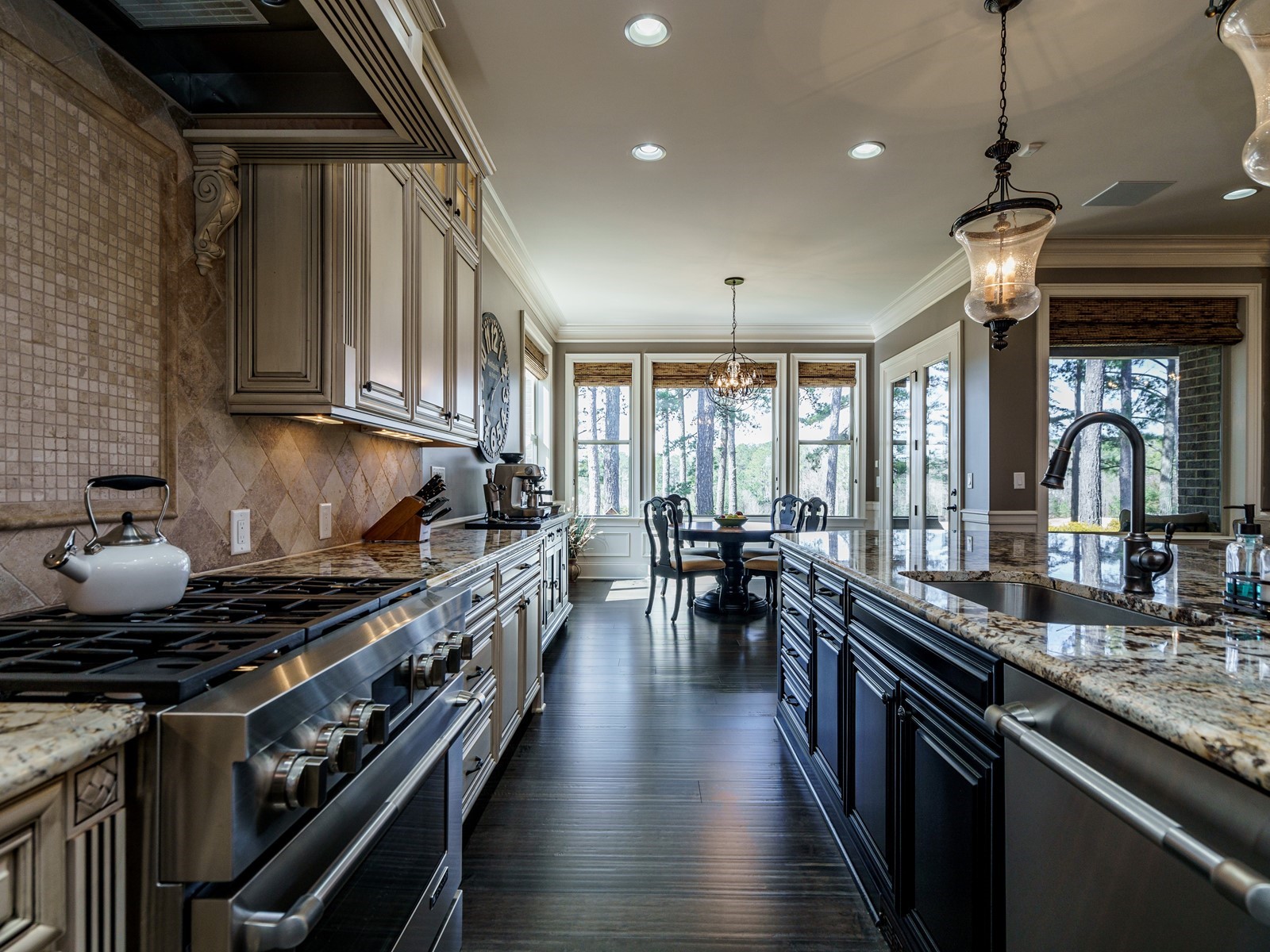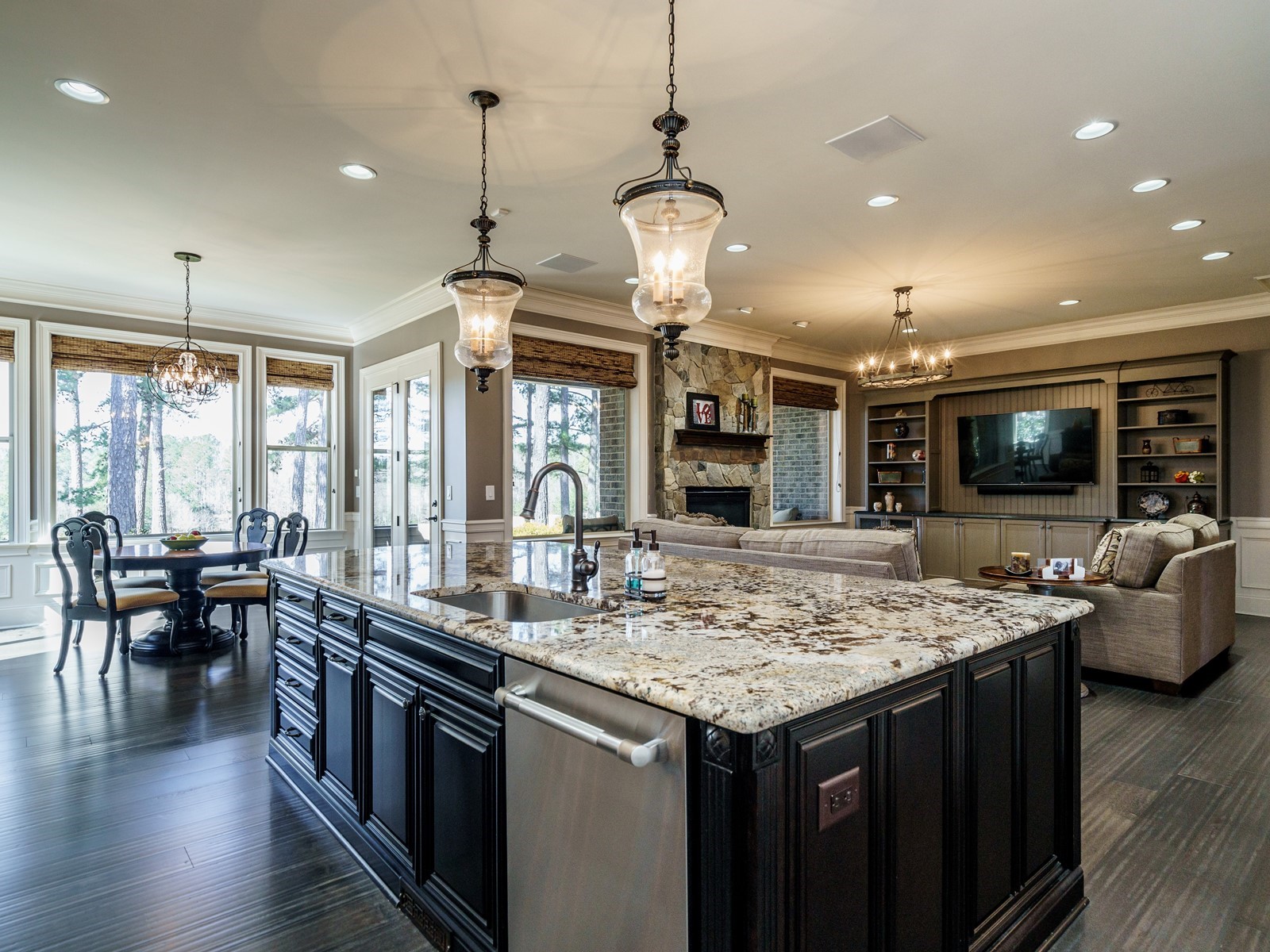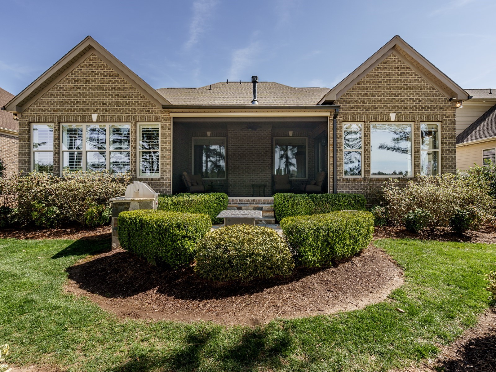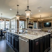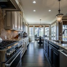 New hand-scraped hardwoods lead from the mahogany double entry doors, past the study and open dining room, straight thru to the million-dollar views. A massive island sets off the creamy white casework – this kitchen is built for serious entertaining. The family room was upgraded with a custom built-in and the fireplace carries warm flagstone details. The west-facing breakfast nook is surrounded with windows, and there is a screened porch (Phantom retractable screen) to enjoy morning and afternoon views of the 10th fairway, and the 17th green, and 18th as well.
