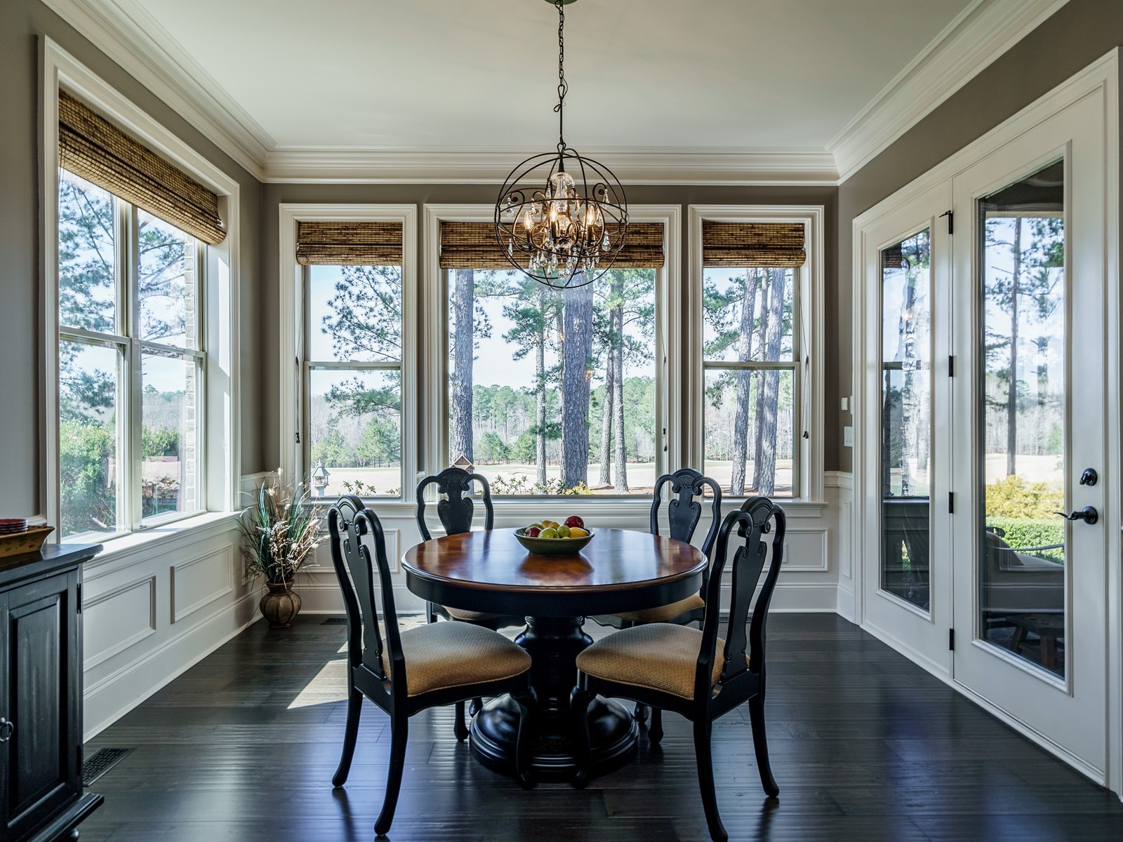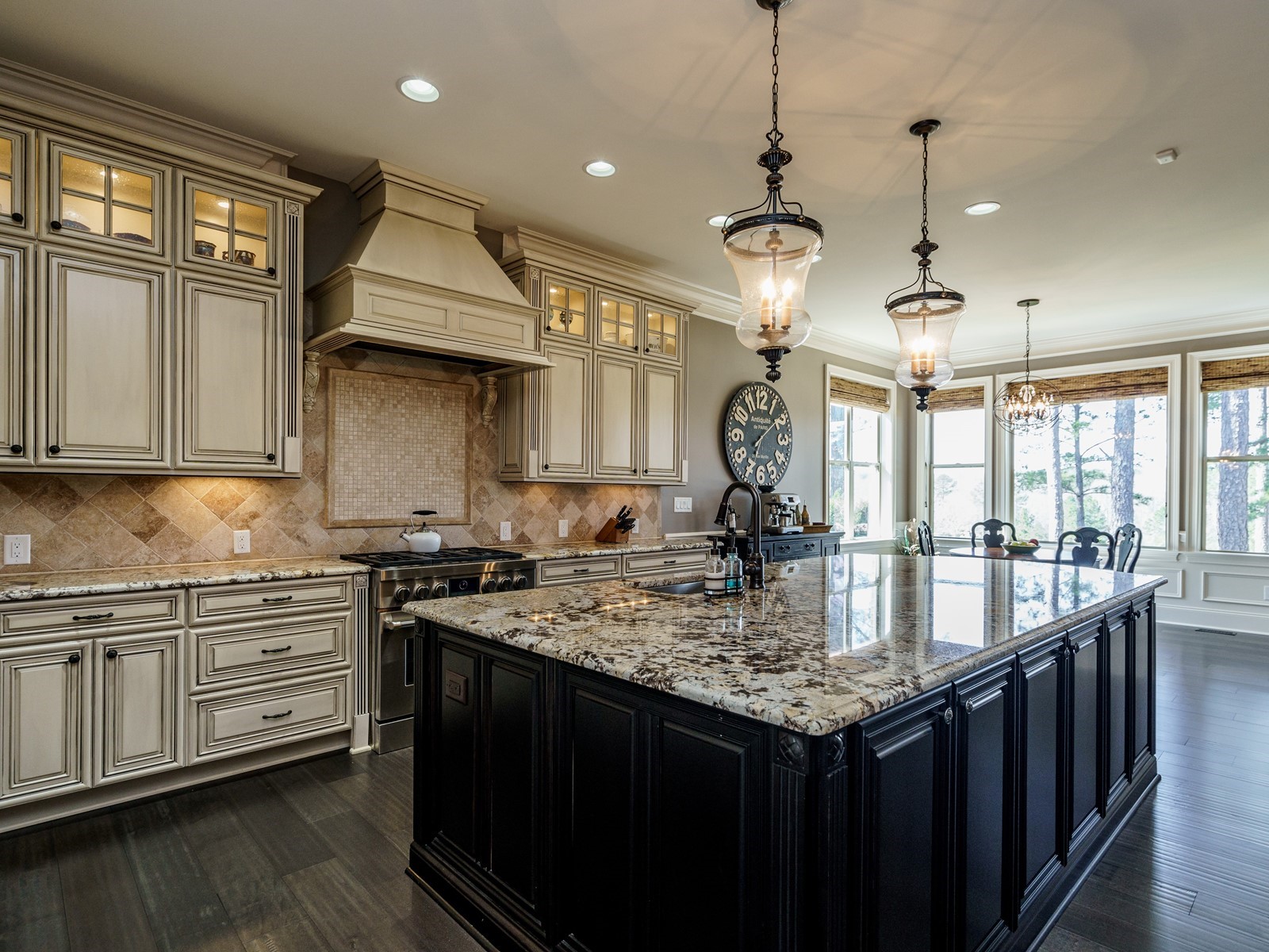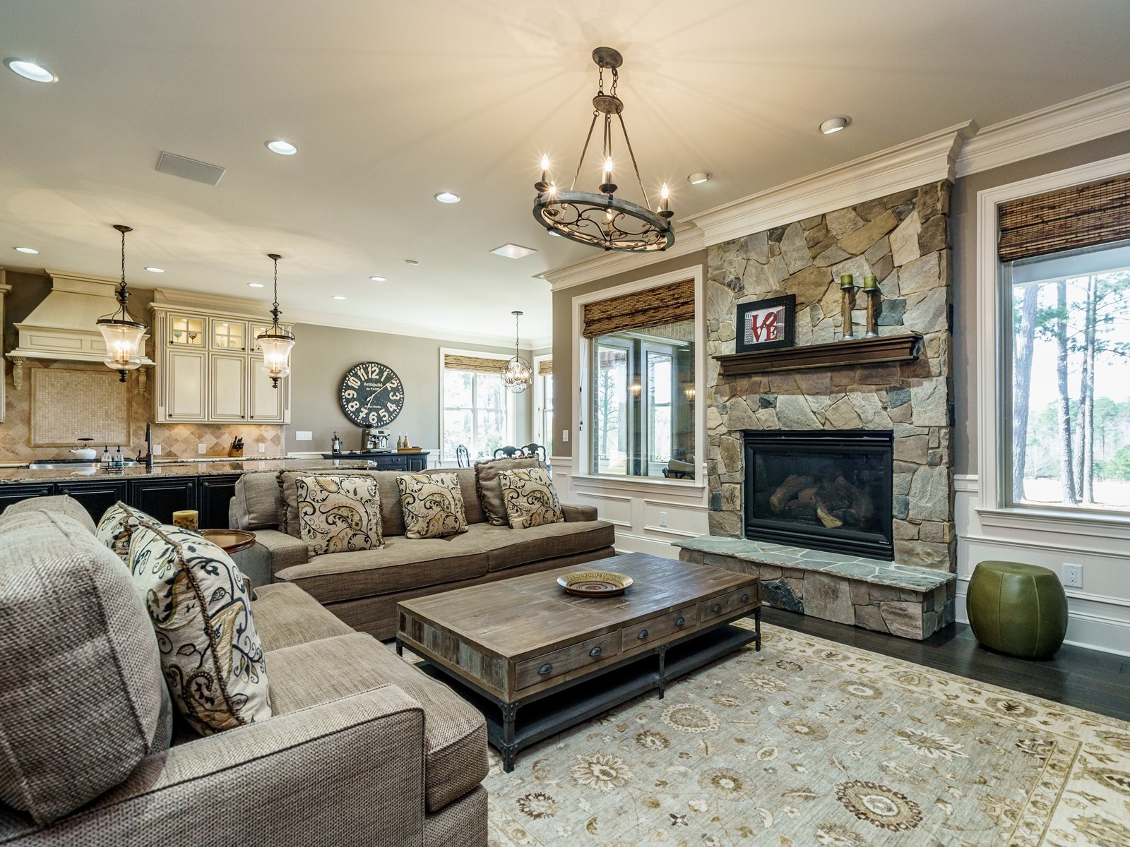New hand-scraped hardwoods lead from the mahogany double entry doors, past the study and open dining room, straight thru to the million-dollar views. A massive island sets off the creamy white casework – this kitchen is built for serious entertaining. The family room was upgraded with a custom built-in and the fireplace carries warm flagstone details. The west-facing breakfast nook is surrounded with windows, and there is a screened porch (Phantom retractable screen) to enjoy morning and afternoon views of the 10th fairway, and the 17th green, and 18th as well.