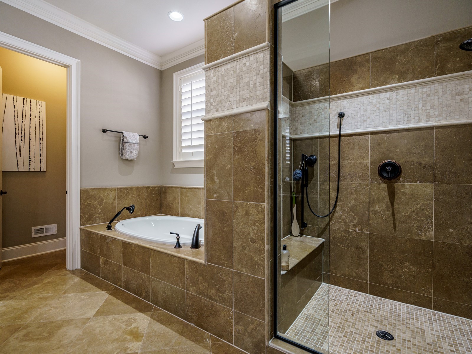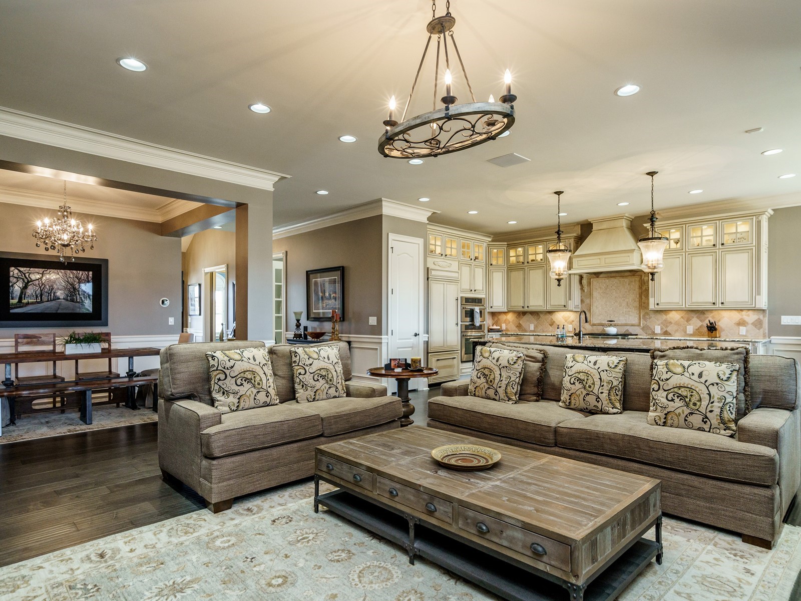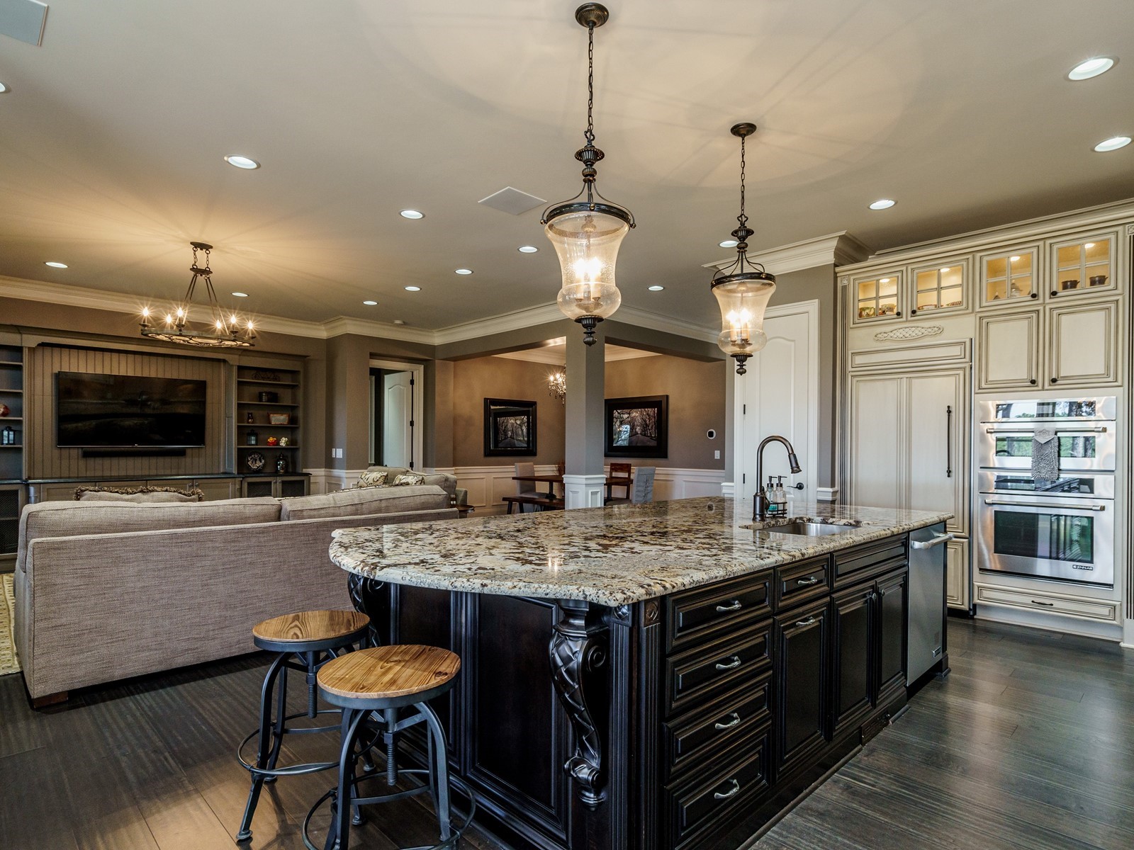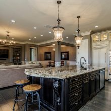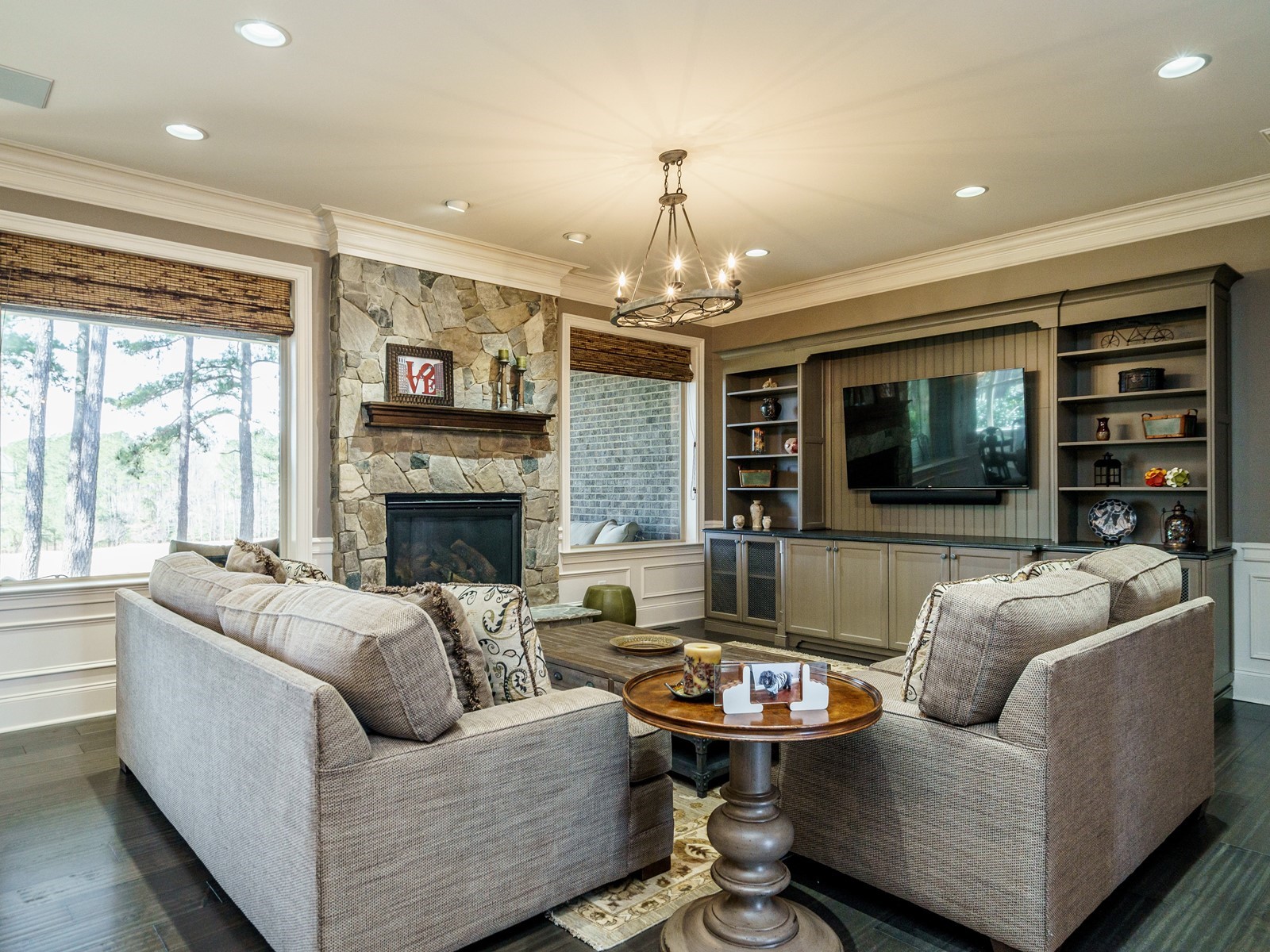 New hand-scraped hardwoods lead from the mahogany double entry doors, past the study and open dining room, straight thru to the million-dollar views. A massive island sets off the creamy white casework – this kitchen is built for serious entertaining. The family room was upgraded with a custom built-in and the fireplace carries warm flagstone details. The west-facing breakfast nook is surrounded with windows, and there is a screened porch (Phantom retractable screen) to enjoy morning and afternoon views of the 10th fairway, and the 17th green, and 18th as well.