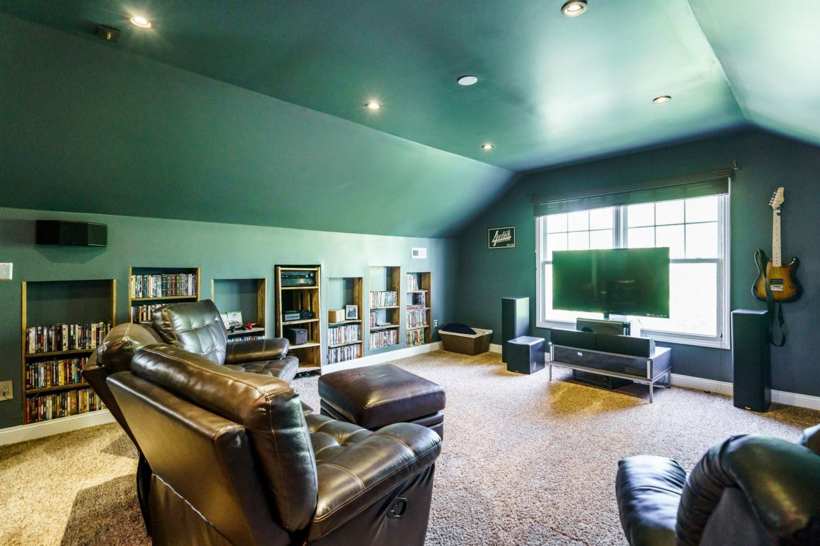 The third floor has been finished in this home to provide a gorgeous media space/adult play room. The space has been fully sound-proofed and pre-wired for any type of audio equipment you could want. There is also a full bathroom on this level and a huge closet just in case you did need a seventh bedroom instead…