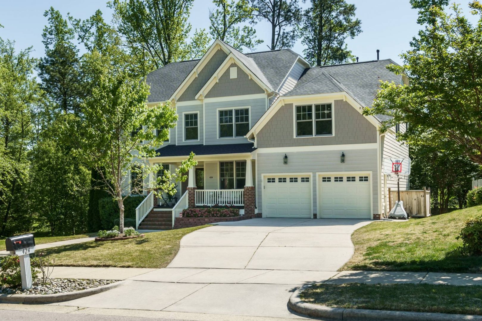 Currently being offered for sale is 424 Waverly Hills Drive. This home is a Craftsman-style home on a double lot is situated on the edge of the development, offering an instant invitation for a walk in the woods. You will be proud to welcome your guests onto the wide front porch. The home has a traditional layout of the front rooms, with a welcoming foyer, dramatic formal living room to the left and a large dining room to the right. The fine detailing of the home is evident immediately with extra molding and wainscoting, and the gleaming hardwoods stretch on forever.