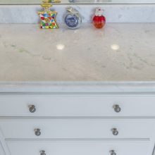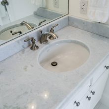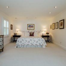 Upstairs, the private living areas reflect the same level of quality, while the master suite encompasses the entire rear of the house. Truly an owners retreat. His and Her closets are each fitted with California Closet systems. The bathroom is indulgent. Every detail has been artfully chosen, from the beautiful pale blue marble vanity, the custom glass window surrounding the corner Jacuzzi tub, to the door handles with coordinating designer hardware.