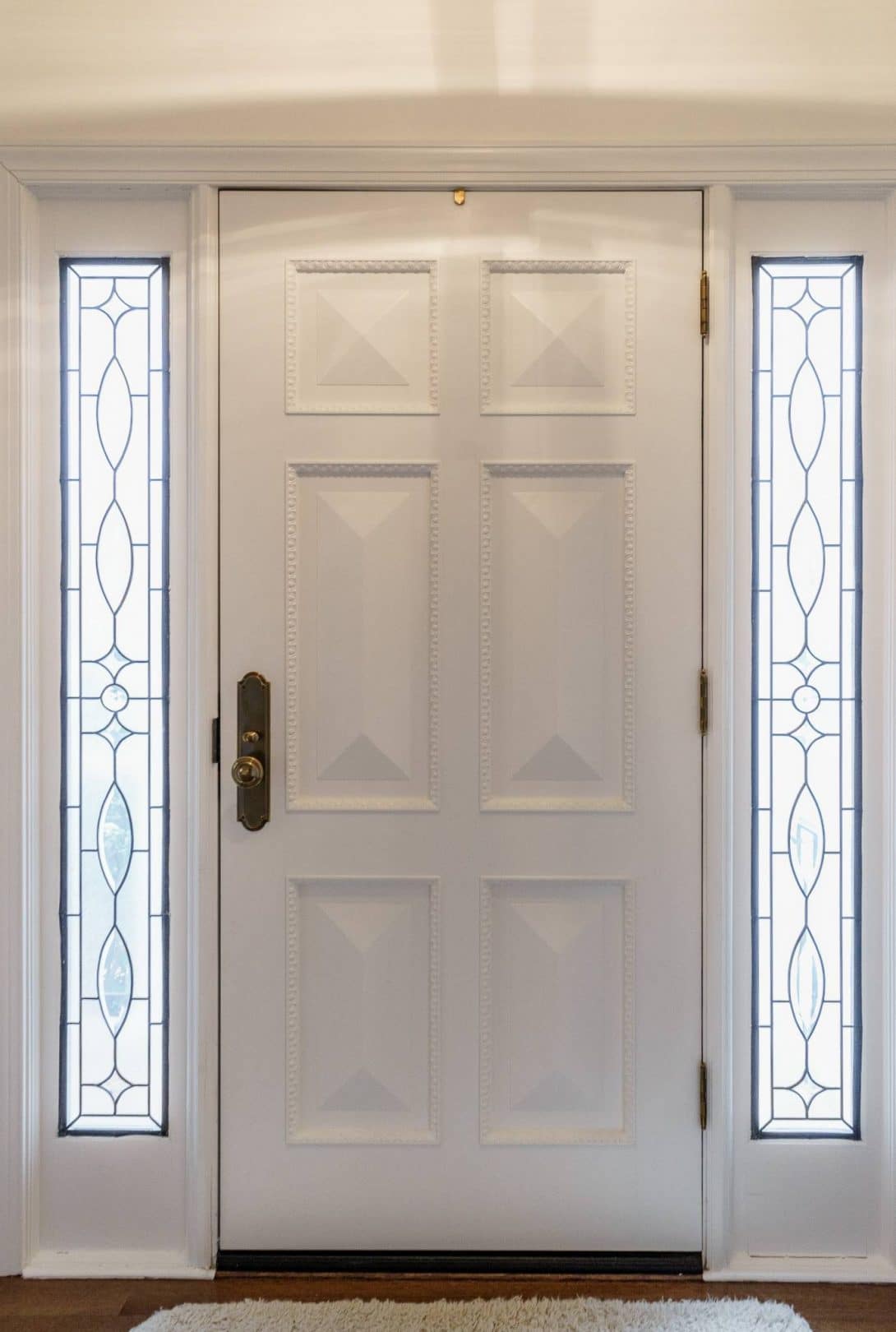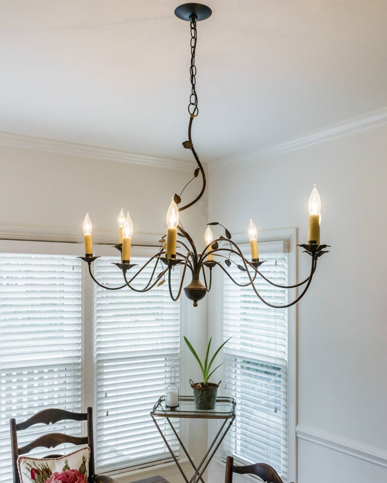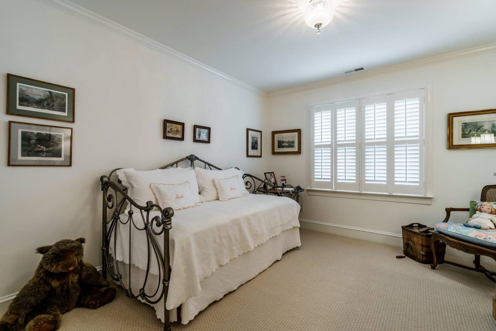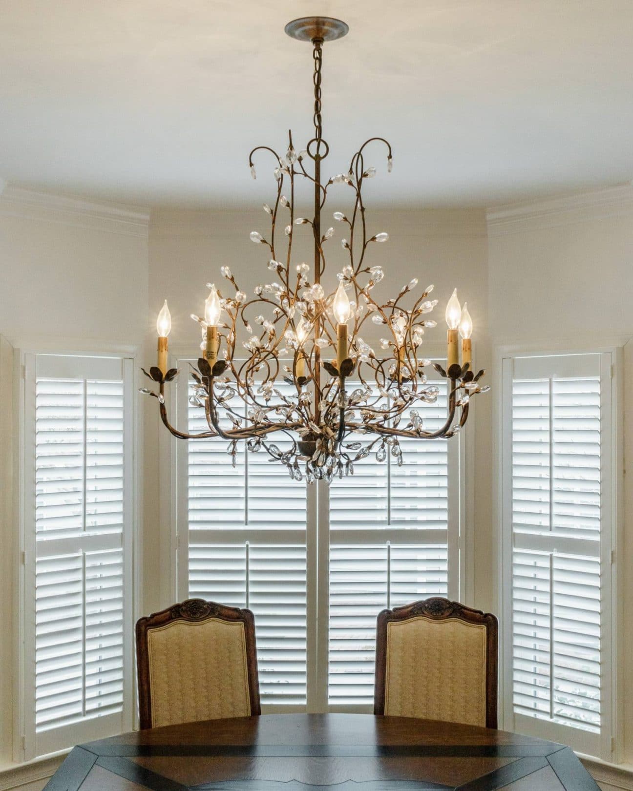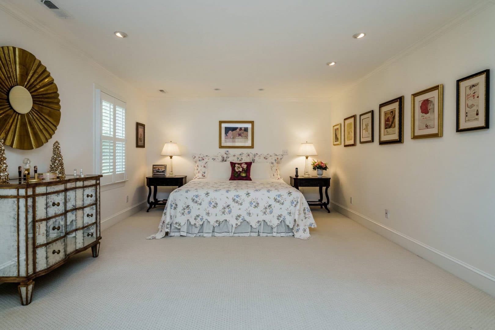 As you enter the house, you’ll notice the beautifully detailed front door, fabulous pendant light, gleaming hardwood floors, and the decorative columns that separate the open living room from the entry. Connecting to this space is a dining room that seats 10, which has a big bay window and a whimsical crystal chandelier that all will admire.