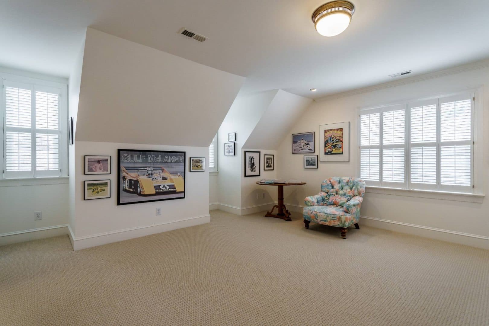 That there is a large bonus room with laundry, a full walk-up attic that could easily become anything you want, two more bedrooms, and a bathroom with double sinks set in a Crema Marfil vanity, truly makes this place special.