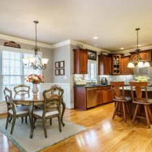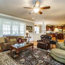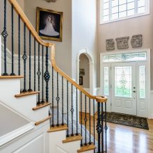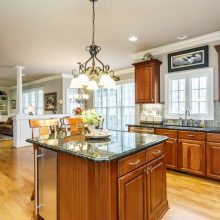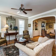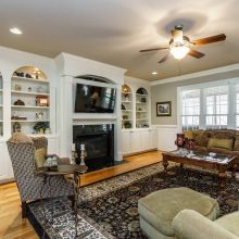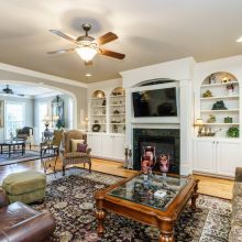Currently being offered for sale is a brick estate on the edge of Falls Lake. 1029 Harpers Ridge Court is a flawless custom home that typifies the Falls Lake lifestyle. A sweeping lawn leads your guests to the covered entry – the manicured landscape highlights the stately curb appeal. It is apparent from the first step into the soaring foyer that his home was built with a craftsman’s careful touch. Custom millwork wraps every edge and the gleaming wide-plank hardwoods seem to go on forever. The formal rooms flank the foyer and feature arched openings and milled wainscoting.