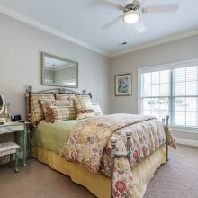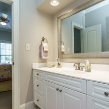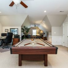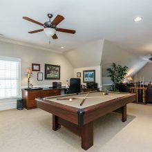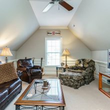 Upstairs, the private space are equally as detailed. The master suite encompasses the entire east side. The bedroom is very generous and has a huge closet. The master bath has double sinks, a glassed shower and corner jetted tub that looks out to the woods beyond. This space is truly an owners retreat. There are two bedrooms to the left that share a jack-n-jill bathroom and a very large bedroom suite to the right. Each of these rooms has great closet space and ceiling fans. The bonus room at the end of the hall offers a comfortable private living opportunity. Separated into two “rooms”, the use options are numerous. There is a built-in desk with granite top as well as a wet bar.