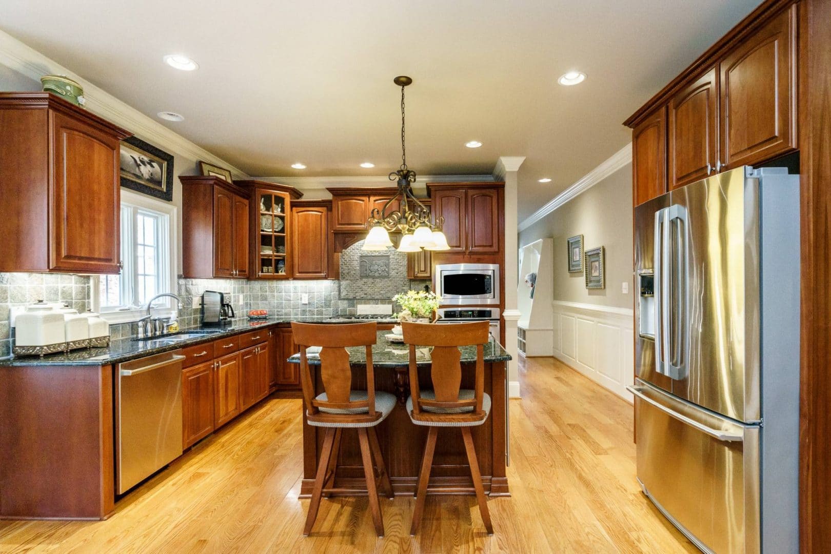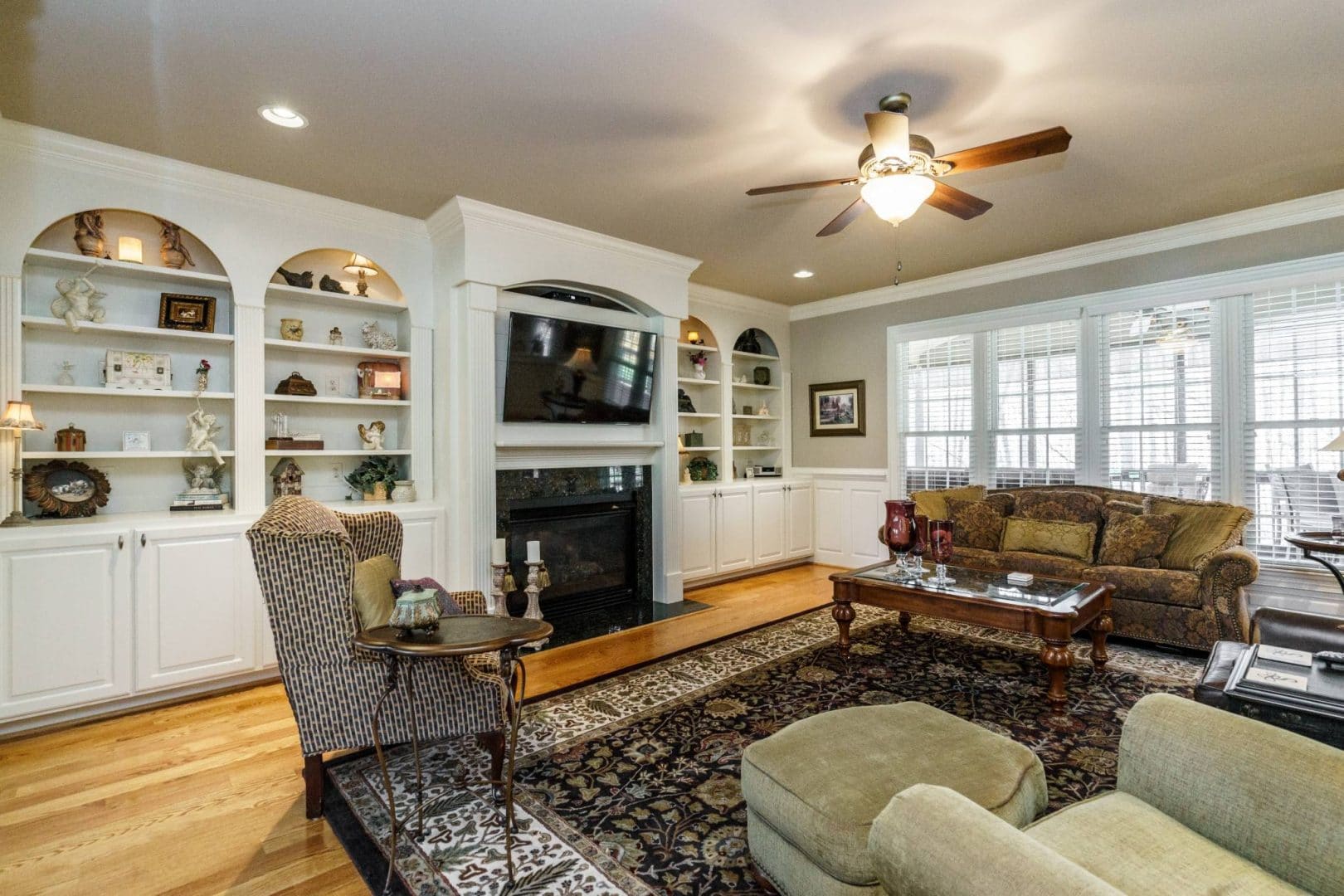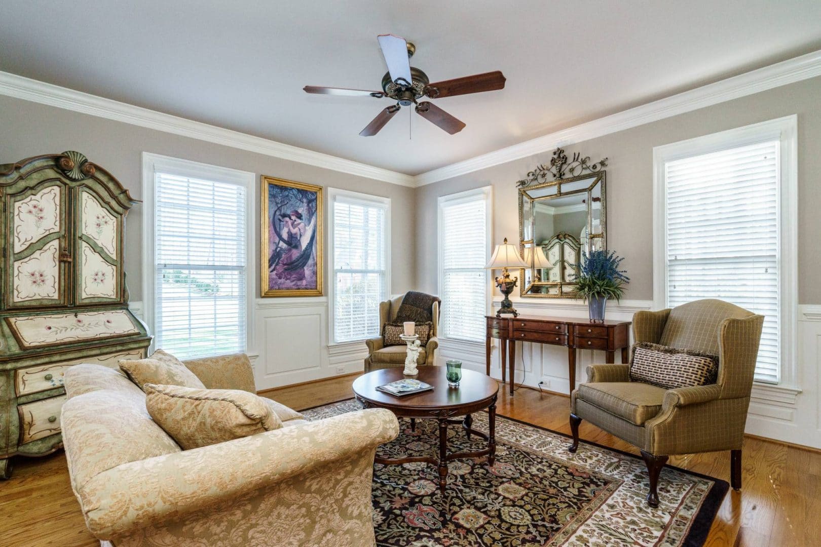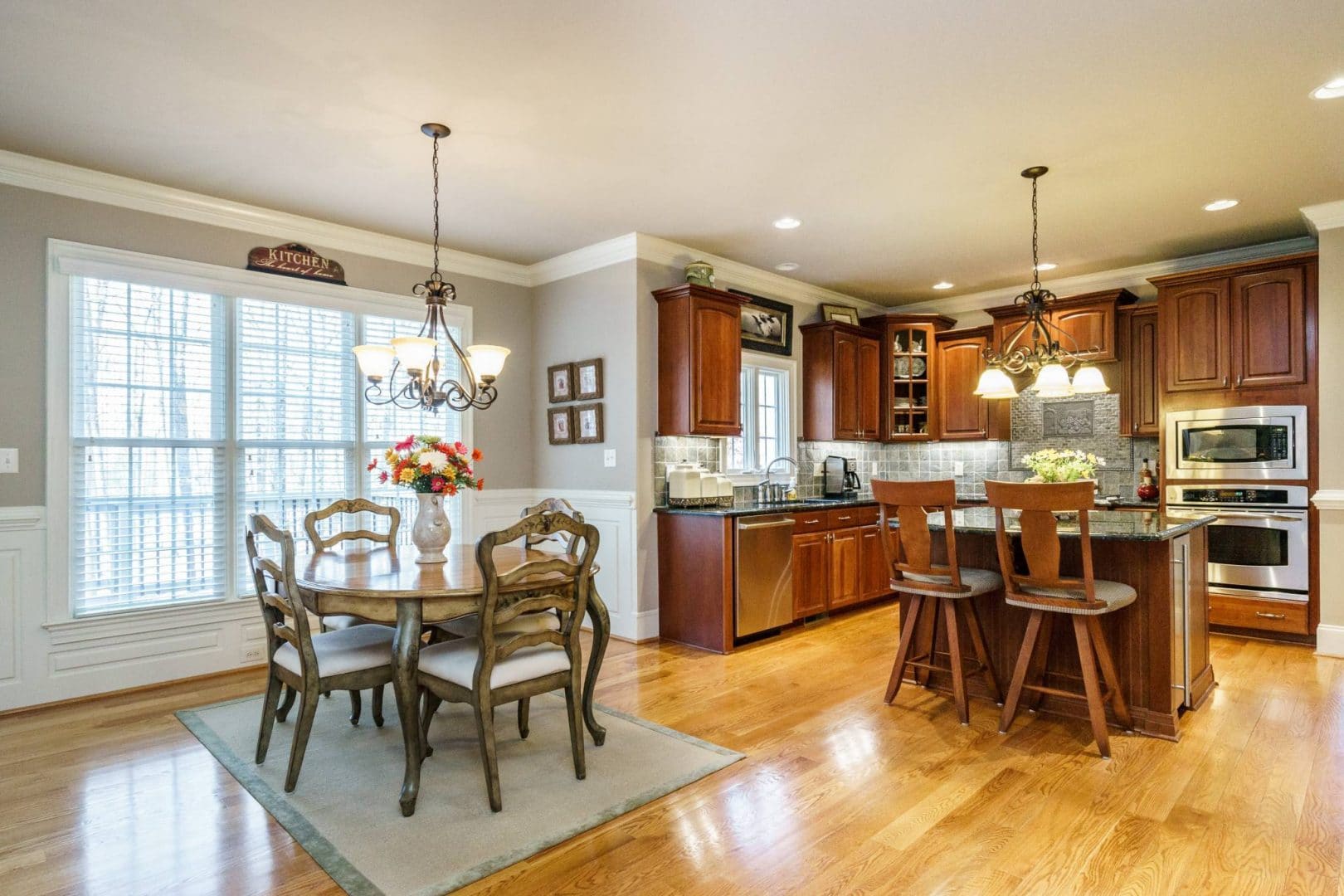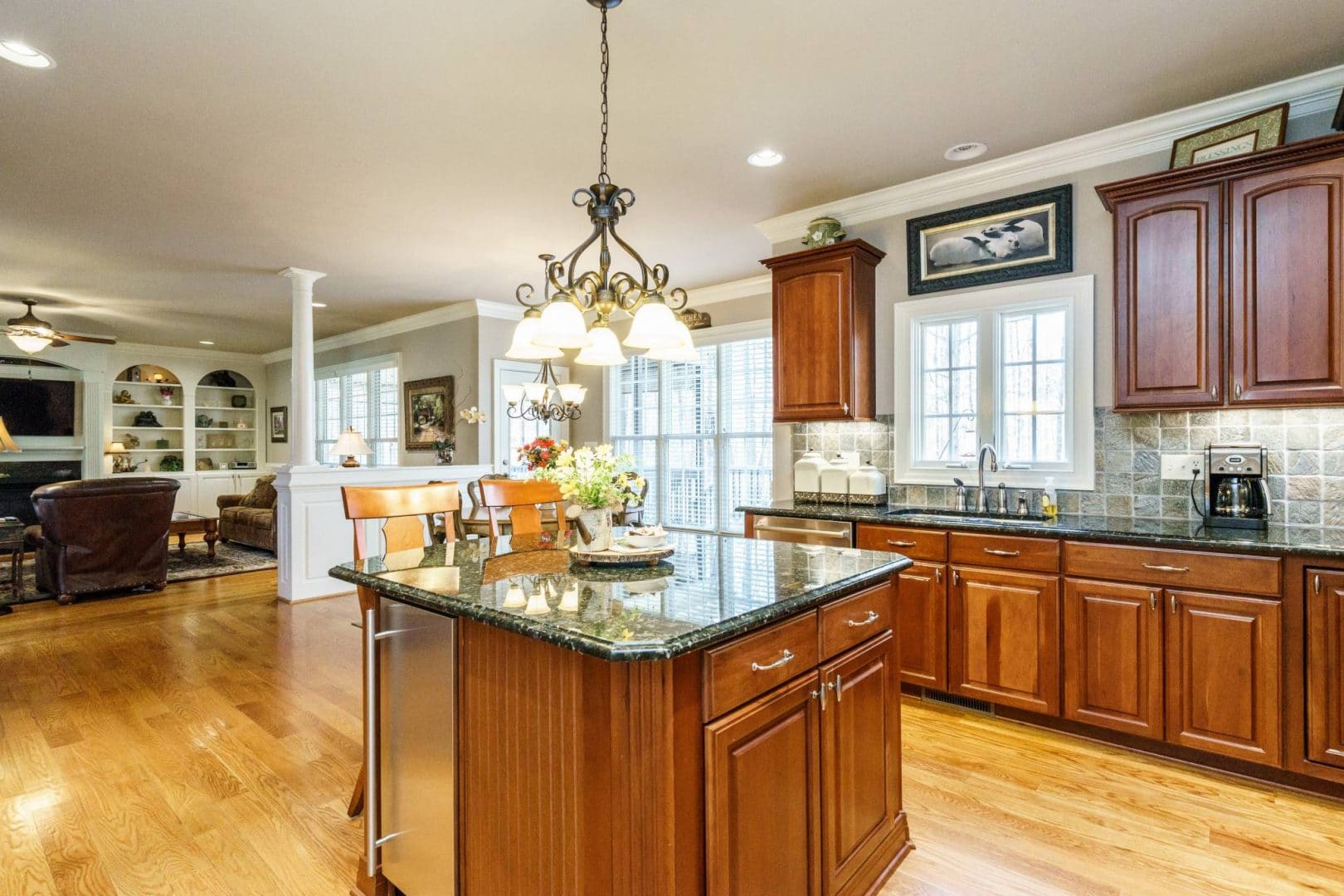 Currently being offered for sale is a brick estate on the edge of Falls Lake. 1029 Harpers Ridge Court is a flawless custom home that typifies the Falls Lake lifestyle. A sweeping lawn leads your guests to the covered entry – the manicured landscape highlights the stately curb appeal. It is apparent from the first step into the soaring foyer that his home was built with a craftsman’s careful touch. Custom millwork wraps every edge and the gleaming wide-plank hardwoods seem to go on forever. The formal rooms flank the foyer and feature arched openings and milled wainscoting.