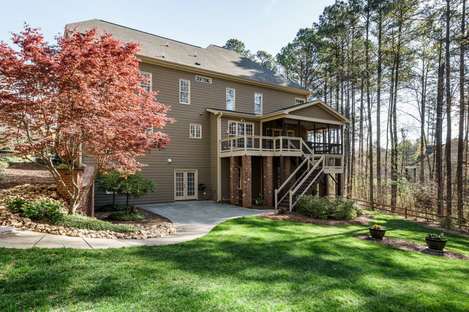 This home also features a great opportunity in the walk out basement. Currently unfinished, there is over 1,600 square feet of potential in this space. In addition to the three-car garage attached to the home, there is a two-car garage/workshop to house your land and lake toys, or to channel your inner furniture maker. The outdoor living spaces of this home are immaculate and comfortable. And, because the property abuts Falls Lake, you will have direct access to all the natural recreation you desire.