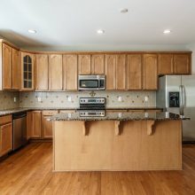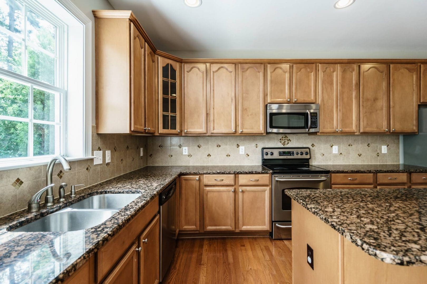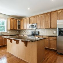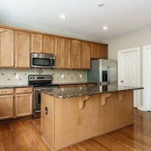 The kitchen is designed for entertaining, with a large center island and inviting access to the deck and patio in the back yard. Details in the kitchen include plenty of cinnamon maple casework, stainless appliances, tiled backsplash, and acres of natural granite. There is a huge pantry as well as oversized laundry located off of this area as well.