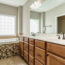 The private living spaces upstairs are similarly appointed. On the south side of the home, the almost 600SF master suite is truly an owners retreat. There is a huge bedroom area and an attached sitting room, and the bathroom features double sinks, glassed shower, jetted tub, tile everywhere and more of that sumptuous cinnamon maple casework. Across the bridge that overlooks the great room, there are three more generous bedrooms that share a large hall bathroom. Each bedroom great closet space, ceiling fans, and tons of natural light.