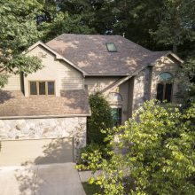 Currently being offered for sale is a gorgeous contemporary home, with privacy galore. 8816 Ross Court is a four bedroom, two and a half bath home designed and built to take advantage of a wooded cul-de-sac lot on the 2nd tee of the golf course. Totally surrounded with lush mature landscape, the angular cedar siding plays well with the stone façade. You will be proud to welcome your guests onto the stone landing and into the soaring two-story foyer. The design does provide for both a formal living and large dining room, which are both located to the right.